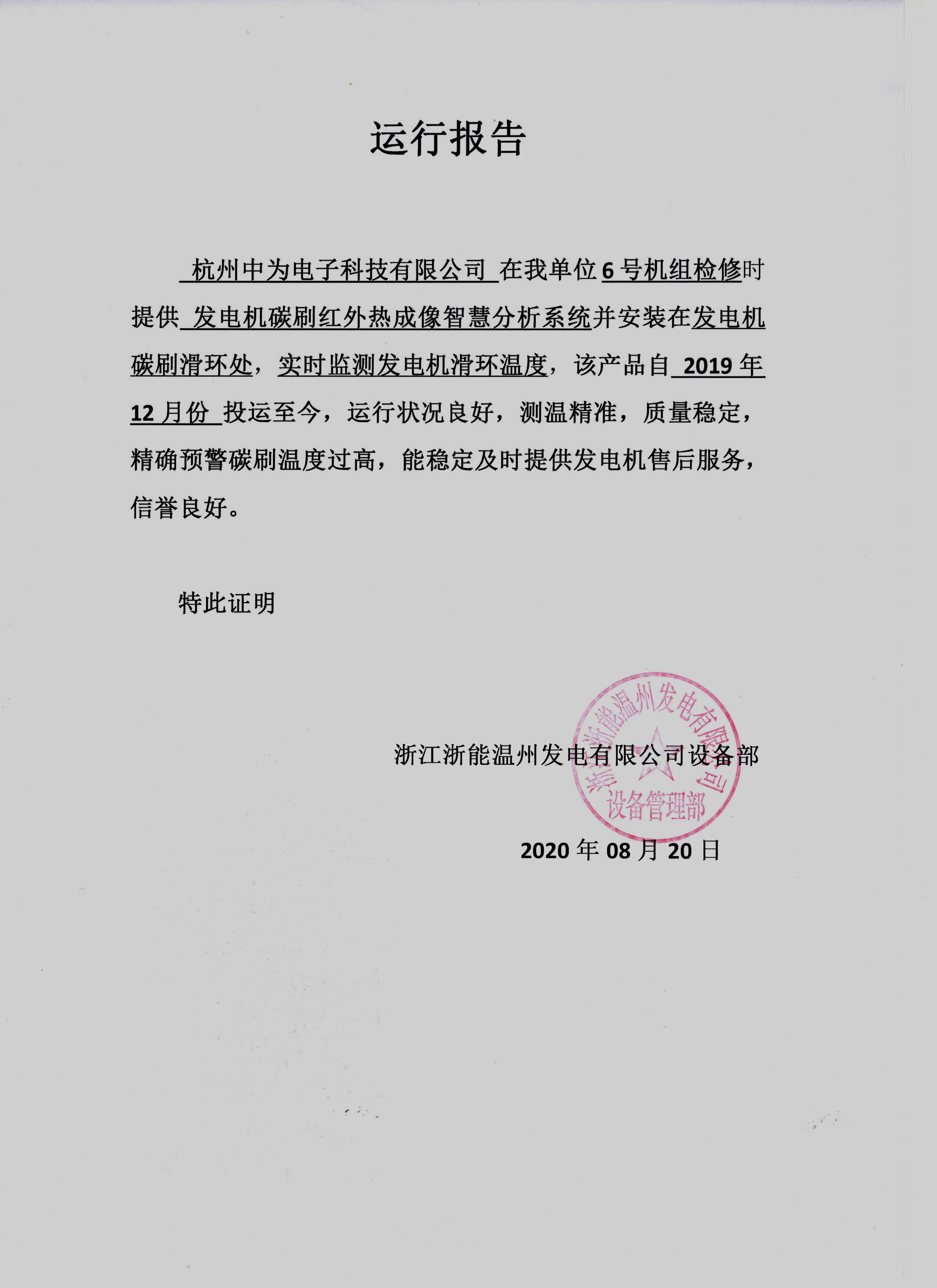 浙江浙能溫州發(fā)電有限公司5、6號機組加裝發(fā)電機碳刷紅外熱成像智慧分析系統(tǒng)