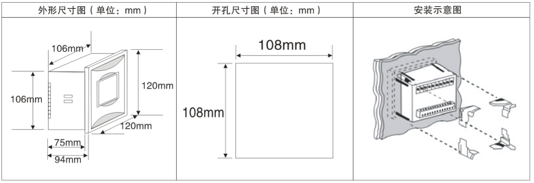 2、開孔尺寸:108mm(寬)×108mm(高)