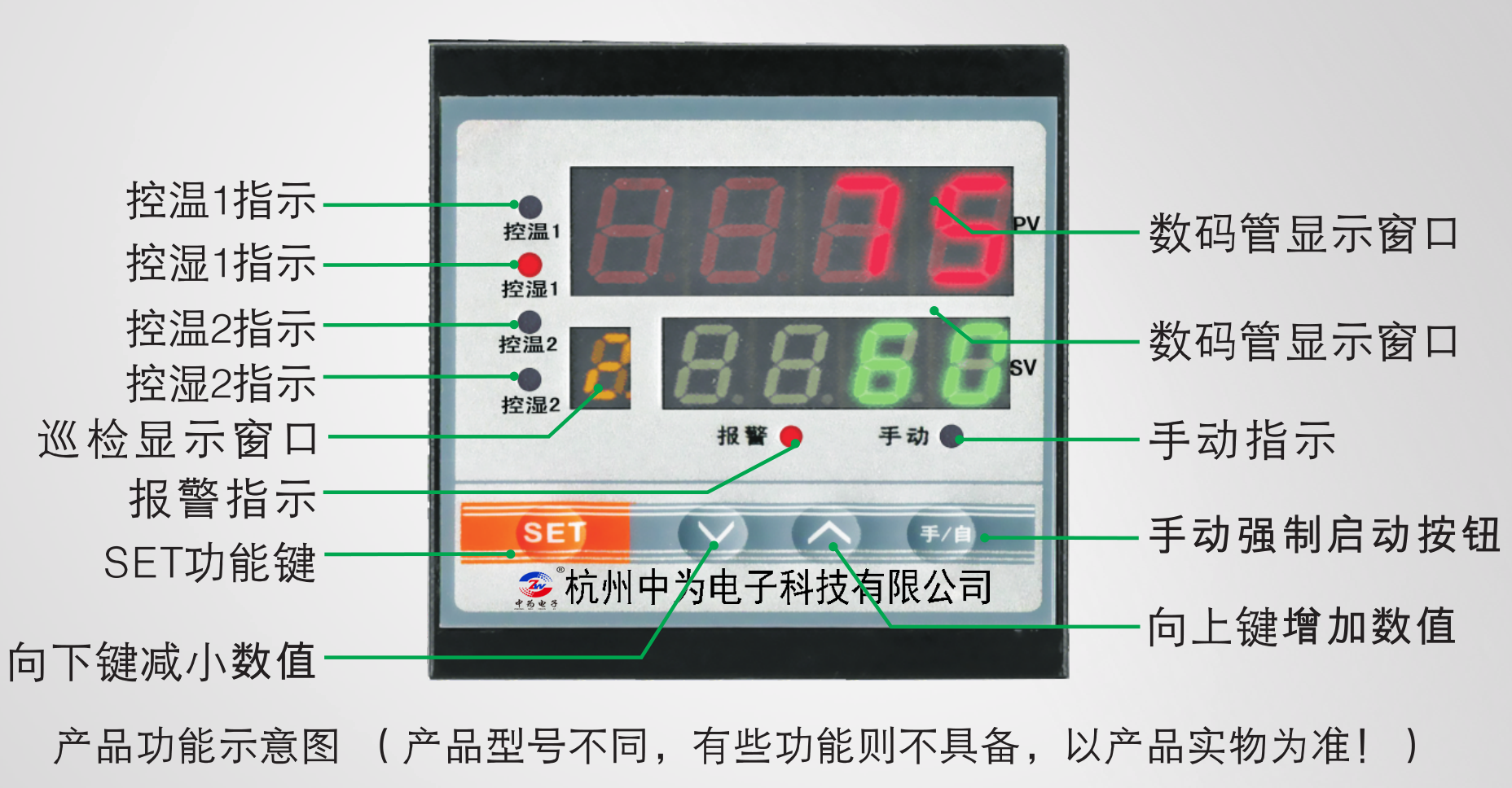 3.除濕型:當測量濕度值大于設(shè)置濕度時,啟動除濕負載,當測量濕度小于