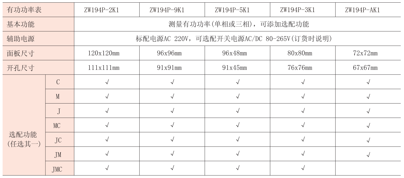 注:“√”代表可選配置,“J”代表報(bào)警輸出,“M”代表模擬量輸出,“K”代表開關(guān)量輸入,“C”代表